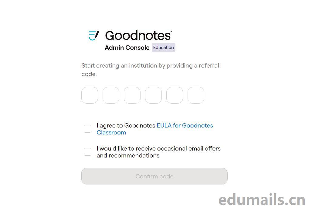 我们登入进来后提示,输入Goodnotes官方邮件里人工提供的唯一机构推荐码: