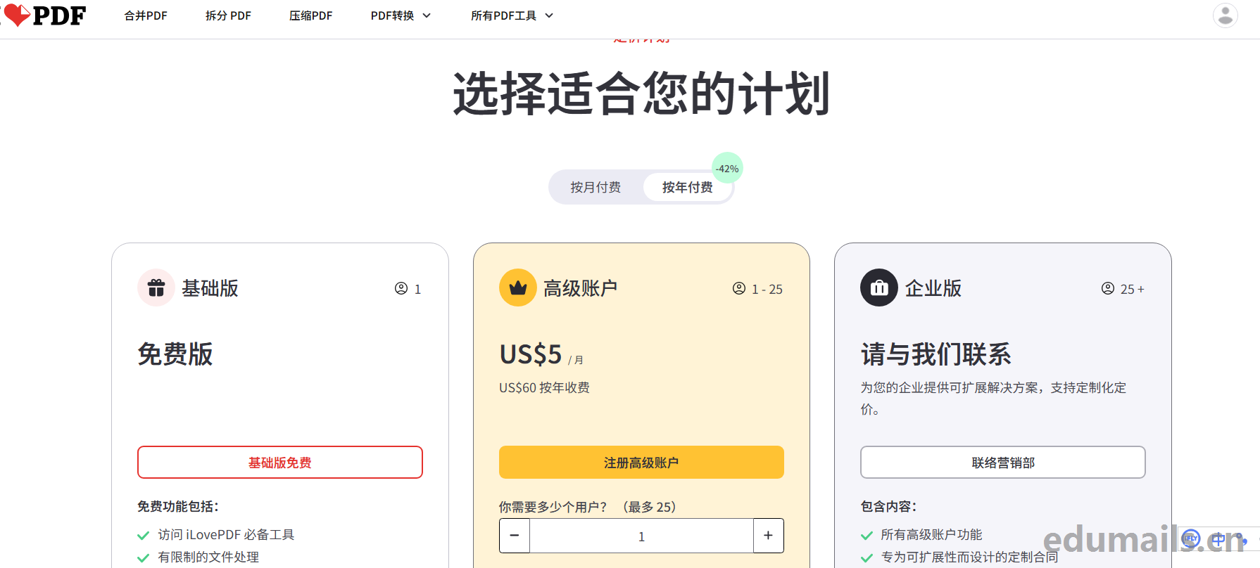 官方价格查看地址:https://www.ilovepdf.com/pricing