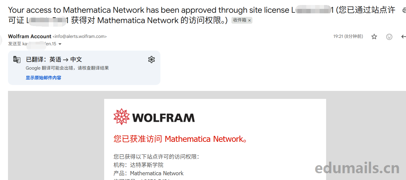 我们edu邮箱收到了标题:“Your access to Mathematica Network has been approved through site license ”